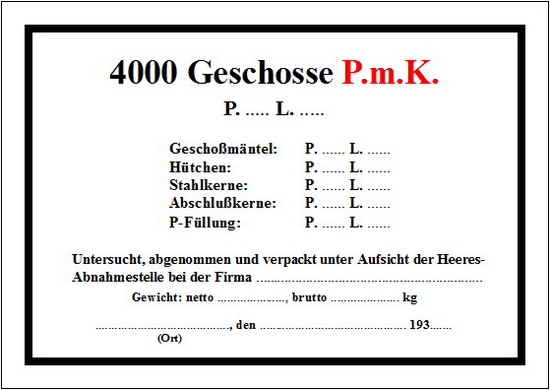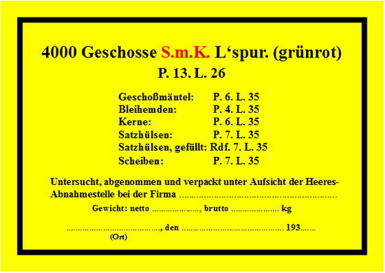 | Zusammenstellung der Inhaltszettel für Munition der Handfeuerwaffen und M.G. und Munitionsteile einschließlich der 2 cm Munition |