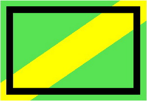 Umrahmung schwarz, 3 mm breit, gelbe Diagonale von links unten nach rechts oben, Beschriftung s. Muster 63 |