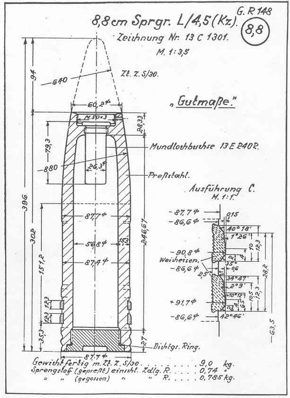 8,8 cm Sprgr. L/4,5 (Kz) (Bo.Pr.)8,8 cm Pzgr. 39