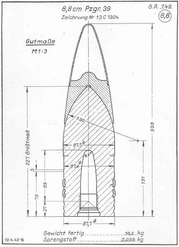 8,8 cm Sprgr. L/4,5 (Kz)8,8 cm Pzgr. 40