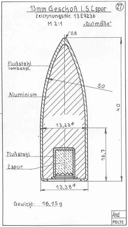 13 mm Geschoß l.S.Verzeichnis der Patronenhülsen