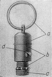 Das Aluminiumröhrchen ist zum Schutz der Anfeuerung gegen Feuchtigkeit mit einer Schutzkappe aus Pappe (d) verschlossen. |