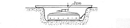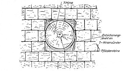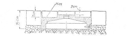 Bild 31. Schnitt durch Minenloch für T-Mine mit eingebauter Tarnung in Pflasterstraße. |