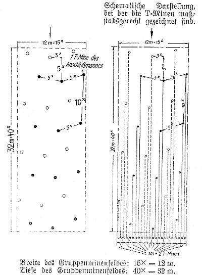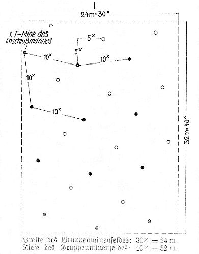 Bild 71. Gruppenminenfeld, 2 T-Minen auf 1 m, verlegt von 1 Gruppe zu 12 Mann, je Mann 2 T-Minen. |