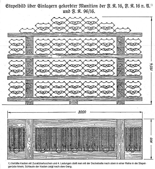 Stapelbild über das Einlagern gekorbter Munition der F.K. 16, F.K. 16 n.A., F.K. 96/16.