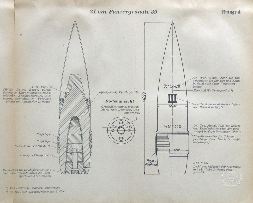 Anlage 3 (21 cm Granate 39 B)Anlage 5 (Zünder, Zündhülse, Lichtspurhülse)Inhaltsverzeichnis
