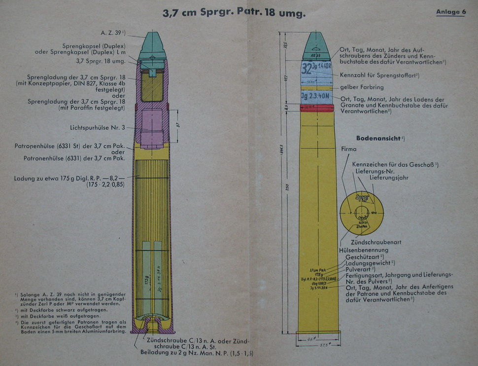 Merkblatt für die Munition der 3,7 cm Panzerabwehrkanone