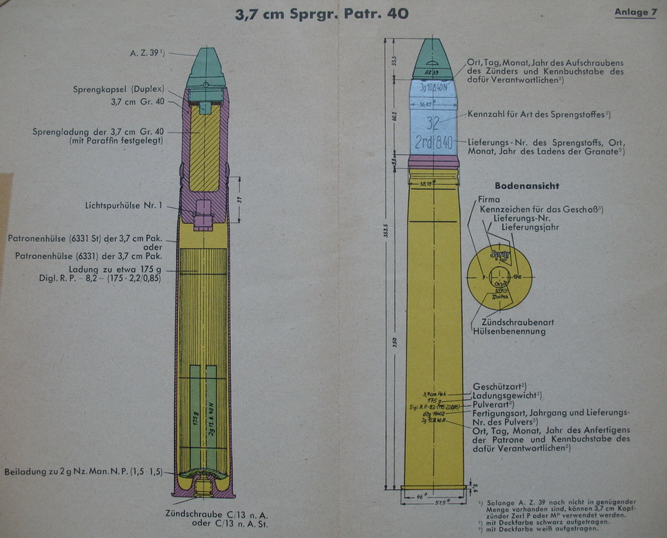 Merkblatt für die Munition der 3,7 cm Panzerabwehrkanone