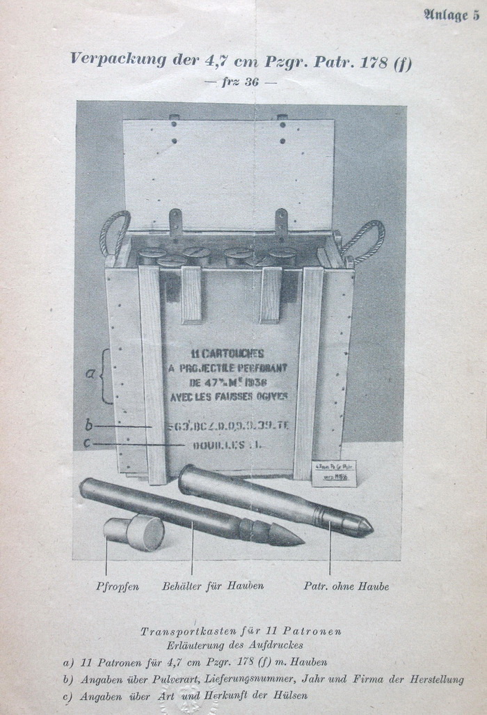 Merkblatt für die Munition der 4,7 cm Pak. 181 (f) - frz 37 SA -