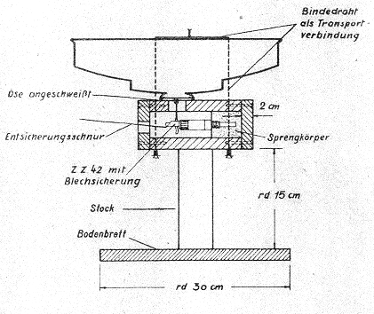 einzelne T-Minen gegen Aufnehmen zu sichern, und zwar so, daß sie sich äußerlich nicht von den anderen Minen unterscheiden. |