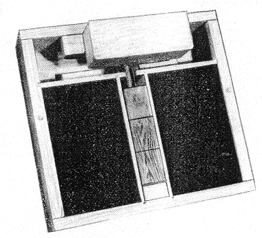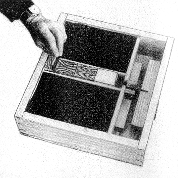 Die Übertragungsladung wird so weit nach vorn geschoben, daß sie an der An-schlagleiste (Bild 7) anliegt und der Bügel des Zünders unter der Scherleiste sitzt. Schrägstellen des Zünders nach oben oder unten ist zu vermeiden. Stößt der Z.Z. 42 beim Einsetzen in die Holzmine 42 auf Widerstand oder läßt sich der Vorstecker-bügel nicht unter die Scherleiste schieben, ist er wieder auszuschrauben, die Mine ist als unbrauchbar zu bezeichnen und abzugeben. |