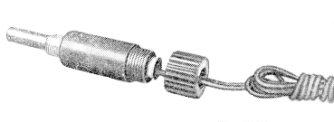 Zwischenraum zwischen Glühzylinder und Zündhalterbohrung gut mit Kabelwachs so ausfüllen, daß ein Teil des Kabelwachses etwas über den Rand des Zünderhal-ters emporragt. Hierauf Zünderhalter-Oberteil fest aufschrauben. |