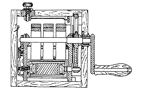 Der Glühzündapparat Mod. 1913 besteht aus 3 feststehenden Magneten, dem Anker und der Übersetzung mit Kurbel. |