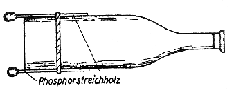 Der Phosphor entzündet sich nach Zerbrechen der Flasche an der Luft unter großer Wär-meentwicklung. |