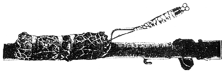 Gelegentlich wird die kentbare Sprengladung auch ohne Tüte angebracht, wenn sie sich so der Form des Sprengobjektes besser angepaßt (z.B. bei Telegraphenmasten ringför-mig). |