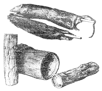 Als Holzklötze getarnte Behälter zum Verstecken von Waffen u. dgl. |