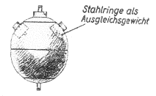 An der unteren Halbkugel ist ein Bolzen angeschweißt, an dem eine 1 m lange Stabilisie-rungsstange mit Flosse oder Ausgleichgewichte befestigt werden können. |