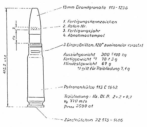 13 mm Brgr.Patr. L'spur El. o. Zerl. |