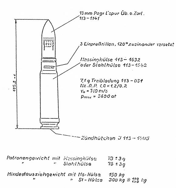 13 mm Pzgr.Patr. L'spur Üb. El. o. Zerl. |
