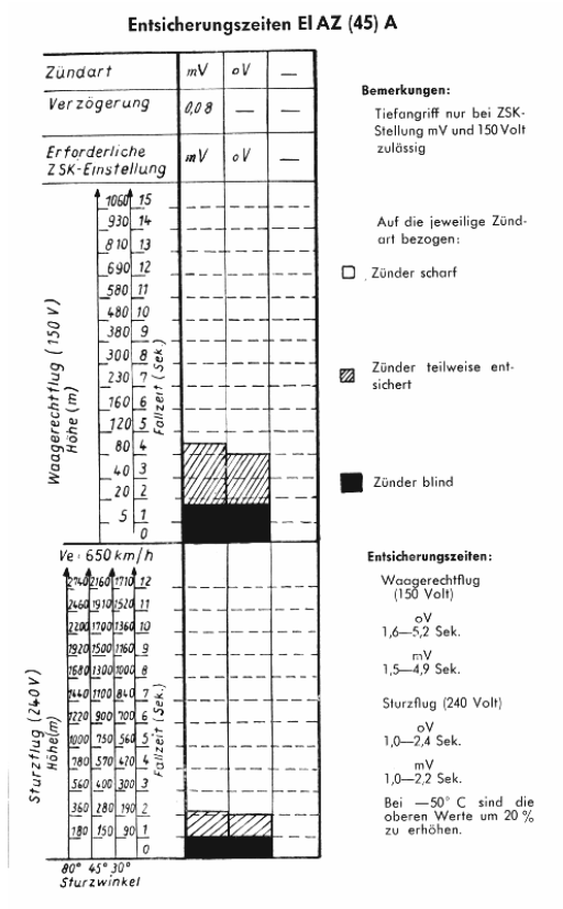 Der El AZ (45) A soll infolge seine einfachen Aufbaues als Reservezünder gegebenenfalls einen Ausfall der (25) D Fertigung bei allen im Hochangriff zu werfenden Bomben über-brücken. |