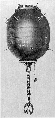 Eiförmiges Gefäß wie bei der Mark XIV, statt der Messingkappen sind aber 11 Stoßkap-pen verwandt (2 auf dem oberen Deckel, 5 am Umfang der oberen und 4 am Umfang der unteren Halbkugel). Als Abschluß der oberen Öffnung ist der Deckel der Mark XVI mit sei-nen 5 Öffnungen verwandt, als Abschluß der unteren Öff-nung die Entschärferplatte der Mark XIV. Unterhalb des Flansches des oberen Deckels befinden sich 3 Heißaugen. Der Ladungskasten ist auswechselbar (225 kg oder 140 kg). Die Mine wird mit 2 Z.E. mit Ver-senkzünder hergerichtet.