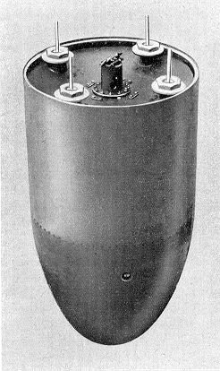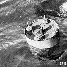 Wirkungsweise: Wasserdruck verursacht, daß die Kontakte im Zündstromkreis geschlos-sen werden. Der Zündstromkreis ist nunmehr nur noch in der Kontakteinrichtung der Stoßkontaktdorne unterbrochen. Wird ein Stoßkontaktdorn umgebogen, dann wird der Stromkreis geschlossen: die Mine detoniert ! |
