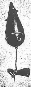 Die Reißboje gleicht in Aufbau und Größe der deutschen Reißboje. Unterhalb der Spitze auf dem kugeligen Teil sitzen 2 Verschlüsse mit Überwurfmuttern, 1 Heißauge und 1 Zan-genhalten. An der unteren Halbkugel sind 4 Auflagetatzen schräg zur Bojenachse ange-bracht. Der Schraubverschluß in der Mitte der Halbkugel unten enthält die Befestigung des Ankertaues. |