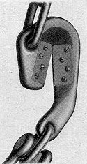 Mit Kette, an der sich ein Reißgreifer be-findet, an schwerem gußeisernen Anker verankert