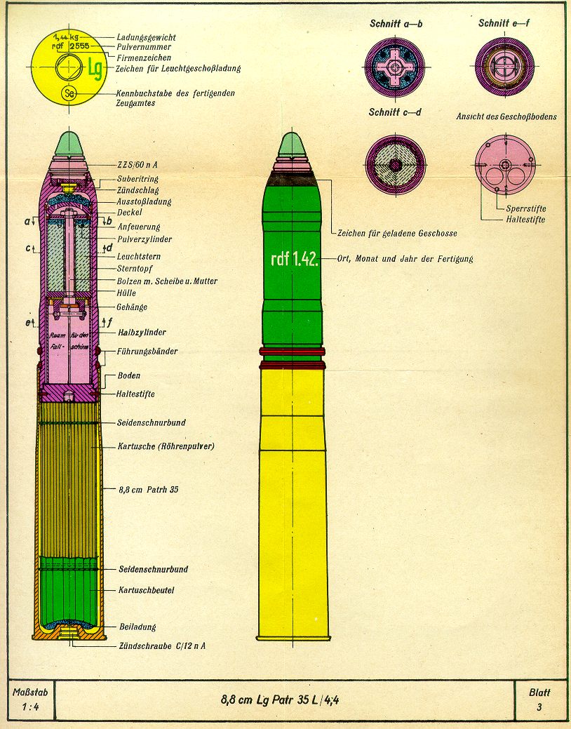 Blatt 2, 8,8 cm Spgr.Patr. 35 L/4,5 BrLh 31 - Gef.Ldg. -Blatt 4, 8,8 cm Üb.Spgr.Patr. 35 L/4,4 Üb. S Lh 31 - Gef.Ldg. -Inhaltsverzeichnis