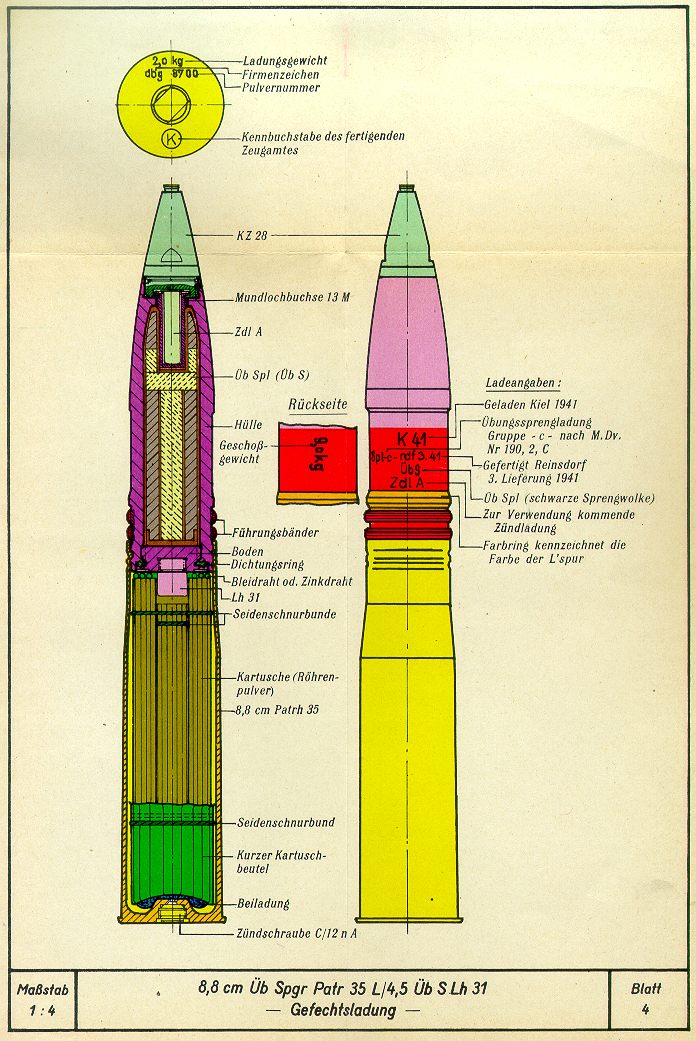 Blatt 3, 8,8 cm Lg.Patr. 35 L/4,5Blatt 5, 8,8 cm Üb.Spgr.Patr. 35 L/4,5 Lh 31 (blind gefüllt) - Gef.Ldg. -Inhaltsverzeichnis