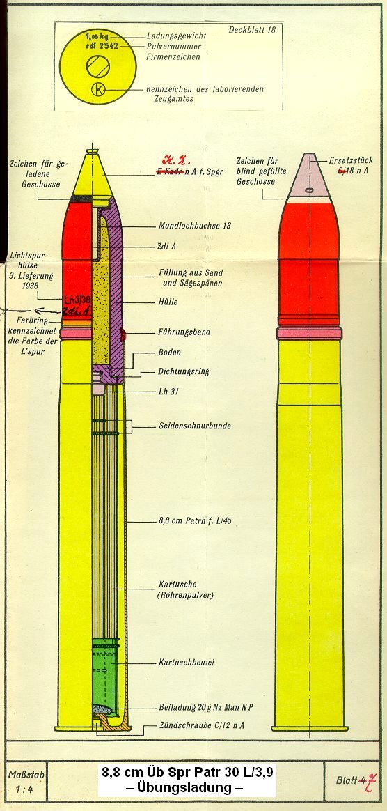 Blatt 6: 8,8 cm Üb Spgr Patr 30 L/4,5 ÜbR - Gefechtsladung -Blatt 8: 8,8 cm Üb Spgr Patr 30 L/3,8 Jz - Übungsladung -