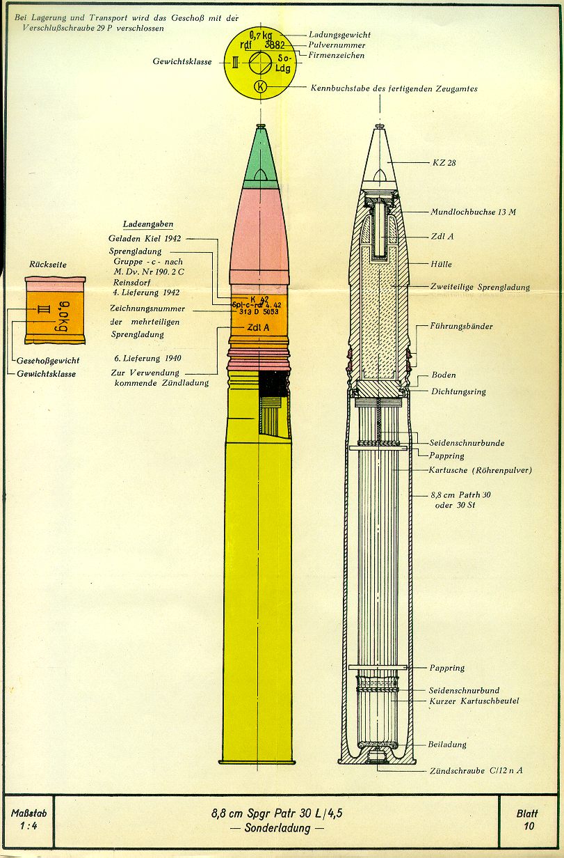 Blatt 9: 8,8 cm Pzgr Patr 30 Lh 1 - Gefechtsladung -Blatt 11: 8,8 cm Spgr Patr 30 L/4,5 Lh 31 - Sonderladung -Inhaltsverzeichnis