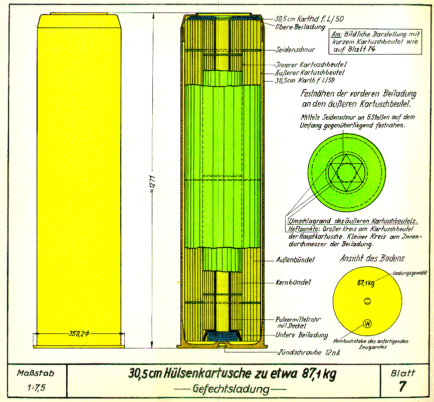 Blatt 6: 30,5 cm Hülsenkartusche zu etwa 80,0 kg - Gefechtsladung -Blatt 8: 28 cm Hülsenkartusche zu etwa 64,0 kg - Gefechtsladung -Inhaltsverzeichnis