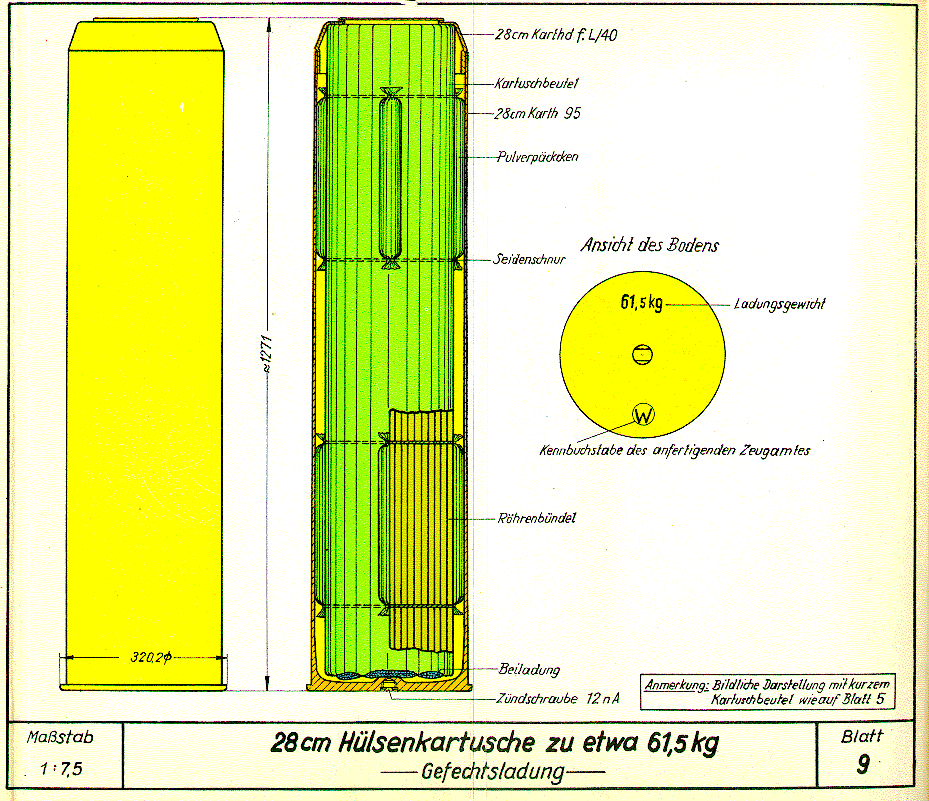 Blatt 8: 28 cm Hülsenkartusche zu etwa 64,0 kg - Gefechtsladung -Blatt 10: 28 cm Hülsenkartusche zu etwa 70,0 kgInhaltsverzeichnis