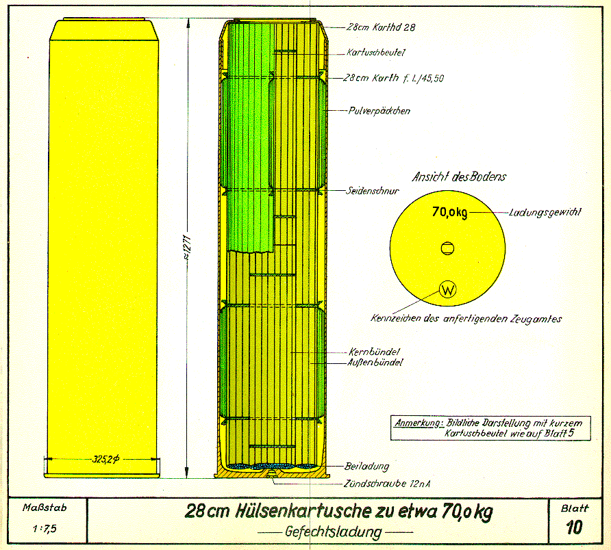Blatt 9: 28 cm Hülsenkartusche zu etwa 61,5 kgBlatt 11: 28 cm Hülsenkartusche zu etwa 74,9 kgInhaltsverzeichnis