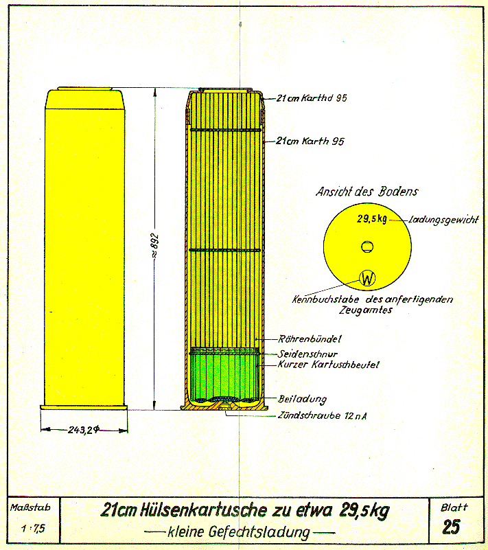 Blatt 24: 21 cm Hülsenkartusche zu etwa 28,5 kg - kleine Gefechtsladung -Blatt 26: 20,3 cm Hülsenkartusche 34 - Gefechtsladung -Inhaltsverzeichnis