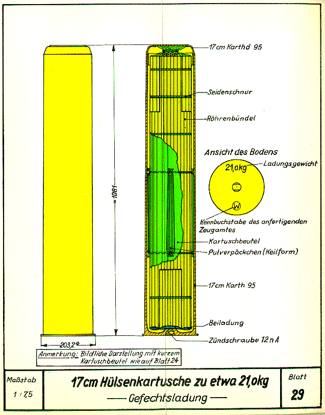 Blatt 27: 20,3 cm Hülsenkartusche 34 - Gefechtsladung -Blatt 30: 17 cm Hülsenkartusche zu etwa 23,6 kg - Gefechtsladung -Inhaltsverzeichnis