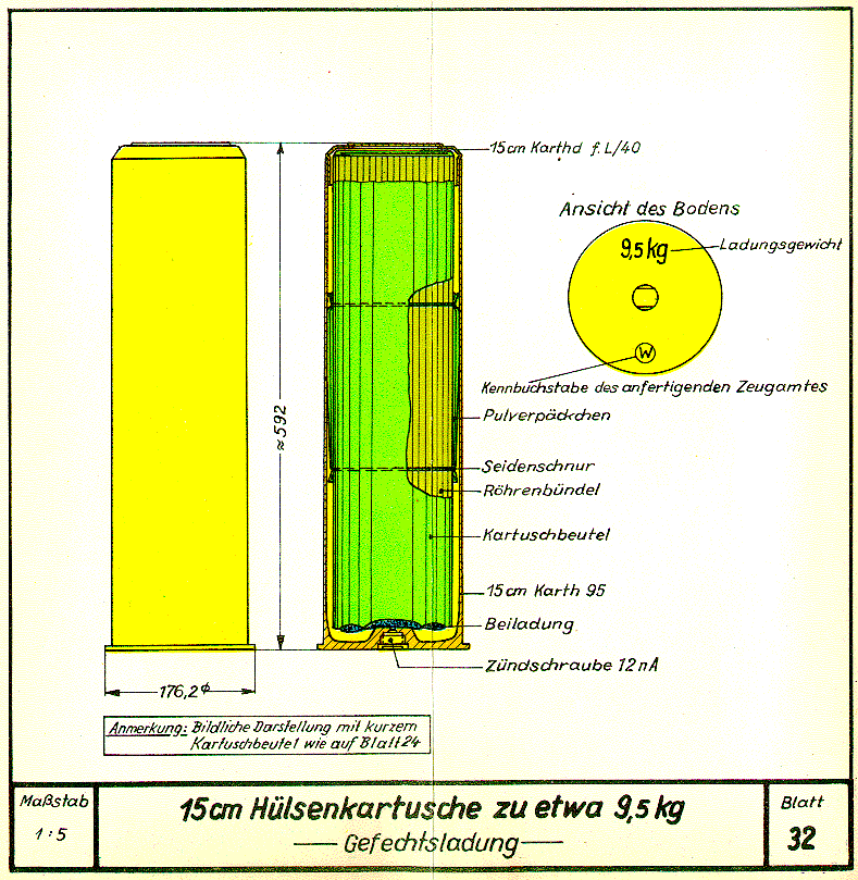Blatt 30: 17 cm Hülsenkartusche zu etwa 23,6 kg - Gefechtsladung -Blatt 33: 15 cm Hülsenkartusche zu etwa 8,06 kg - Gefechtsladung -Inhaltsverzeichnis