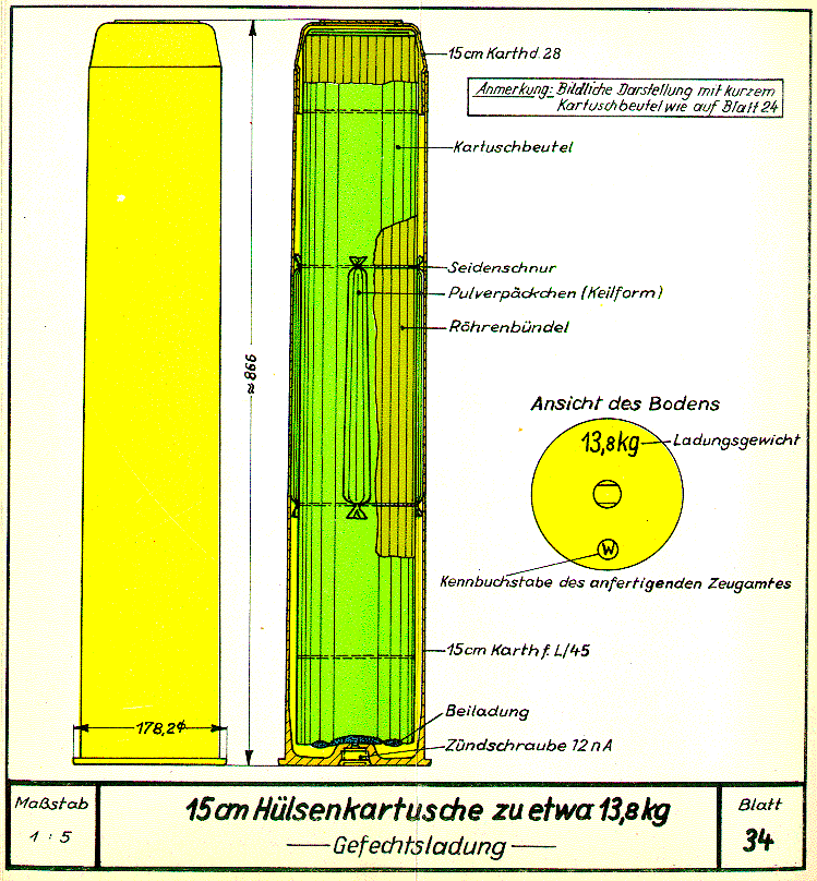 Blatt 33: 15 cm Hülsenkartusche zu etwa 8,06 kg - Gefechtsladung -Blatt 35: 15 cm Hülsenkartusche zu etwa 14,6 kg - Gefechtsladung -Inhaltsverzeichnis