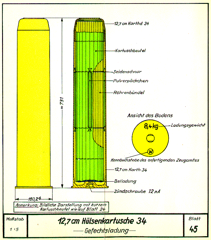 Blatt 43: 15 cm Hülsenkartusche 36 - Gefechtsladung -Blatt 47: 6 cm Hülsenkartusche zu etwa 0,115 kg - Gefechtsladung -Inhaltsverzeichnis