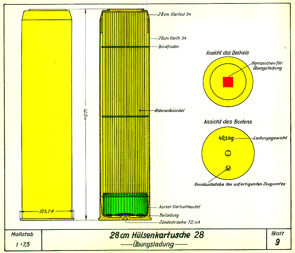 Blatt 8: 28 cm Hülsenkartusche zu etwa 37,0 kg - Übungsladung -Blatt 10: 28 cm Hülsenkartusche 34 - Übungsladung -Inhaltsverzeichnis