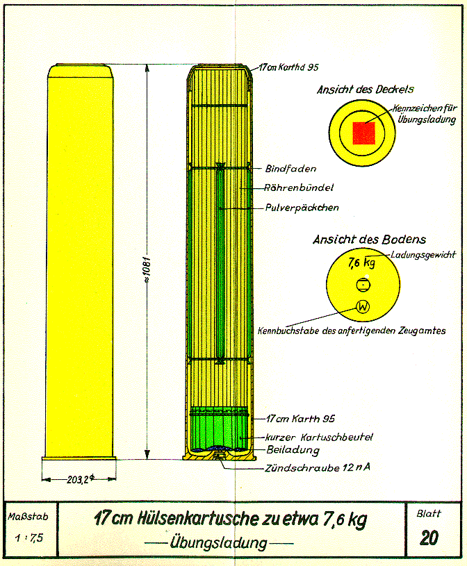 Blatt 18: 20,3 cm Hülsenkartusche 34 - Übungsladung -Blatt 21: 17 cm Hülsenkartusche zu etwa 8,7 kg - Übungsladung -Inhaltsverzeichnis