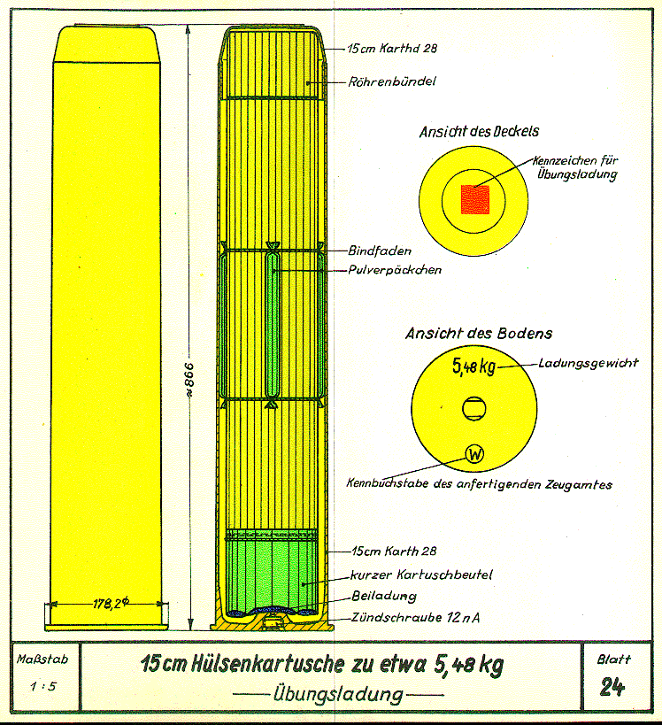 Blatt 23: 15 cm Hülsenkartusche zu etwa 3,75 kg - Übungsladung -Blatt 25: 15 cm Hülsenkartusche 25 - Übungsladung -Inhaltsverzeichnis