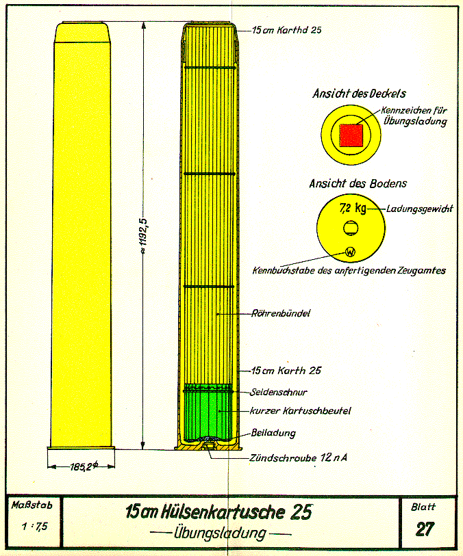 Blatt 26: 15 cm Hülsenkartusche 25 - Übungsladung -Blatt 28: 15 cm Hülsenkartusche 28 - Gefechtsladung -Inhaltsverzeichnis