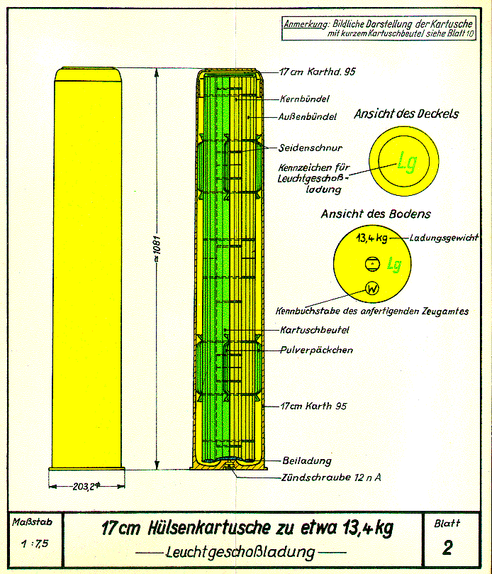 Blatt 1: 20,3 cm Hülsenkartusche 34 - Leuchtgeschoßladung -Blatt 3: 17 cm Hülsenkartusche zu etwa 13,6 kg - Leuchtgeschoßladung -Inhaltsverzeichnis
