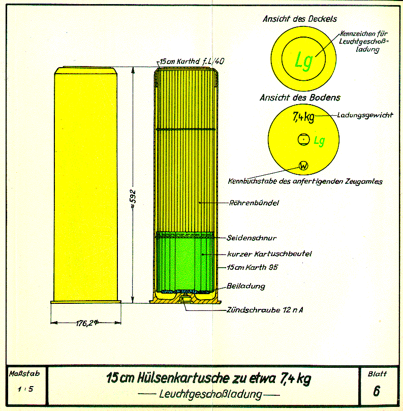 Blatt 5: 15 cm Hülsenkartusche zu etwa 3,25 kg - Leuchtgeschoßladung -Blatt 7: 15 cm Hülsenkartusche zu etwa 3,85 kg - Leuchtgeschoßladung -Inhaltsverzeichnis