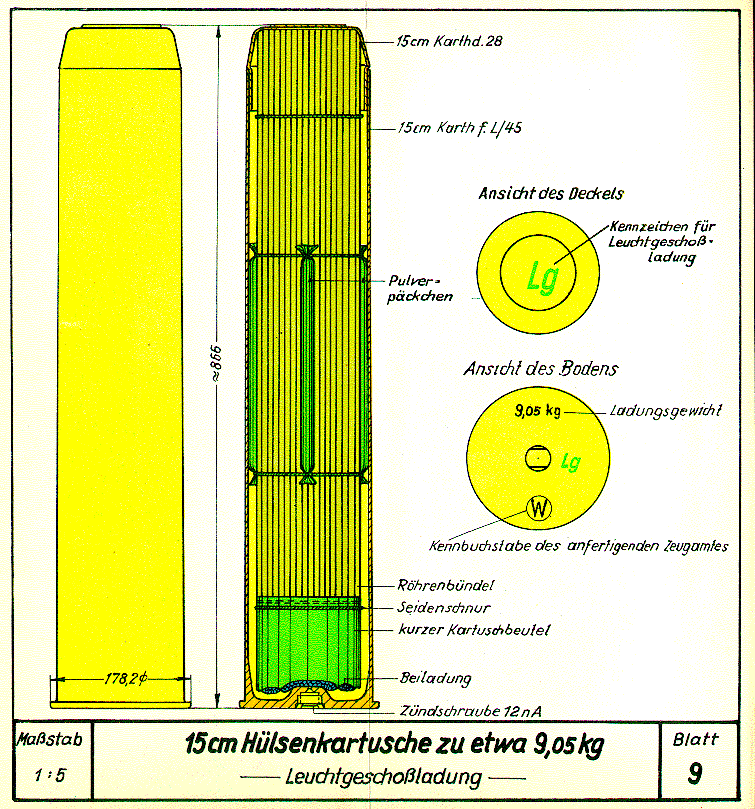 Blatt 8: 15 cm Hülsenkartusche zu etwa 8,98 kg - Leuchtgeschoßladung -Blatt 10: 15 cm Hülsenkartusche 25 - Leuchtgeschoßladung -Inhaltsverzeichnis