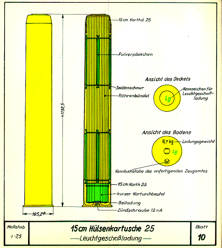 Blatt 9: 15 cm Hülsenkartusche zu etwa 9,05 kg - Leuchtgeschoßladung -Blatt 11: 15 cm Hülsenkartusche 28 - Leuchtgeschoßladung -Inhaltsverzeichnis