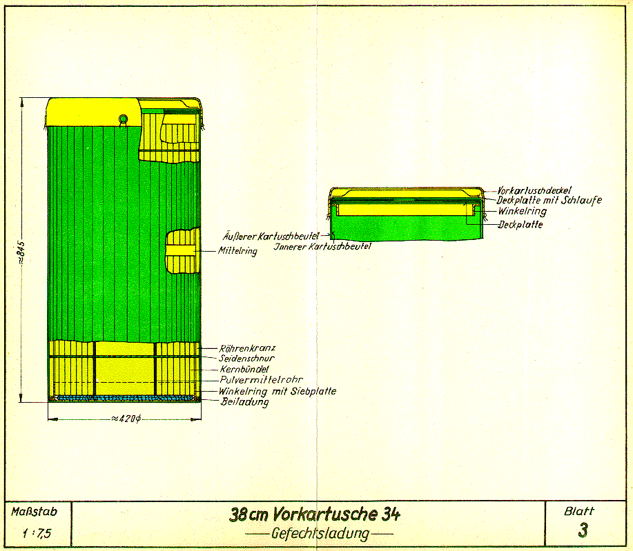 Blatt 1: 40,6 cm Vorkartusche 34 - Gefechtsladung -Blatt 5: 30,5 cm Vorkartusche zu etwa 67,0 kg - Gefechtsladung -Inhaltsverzeichnis