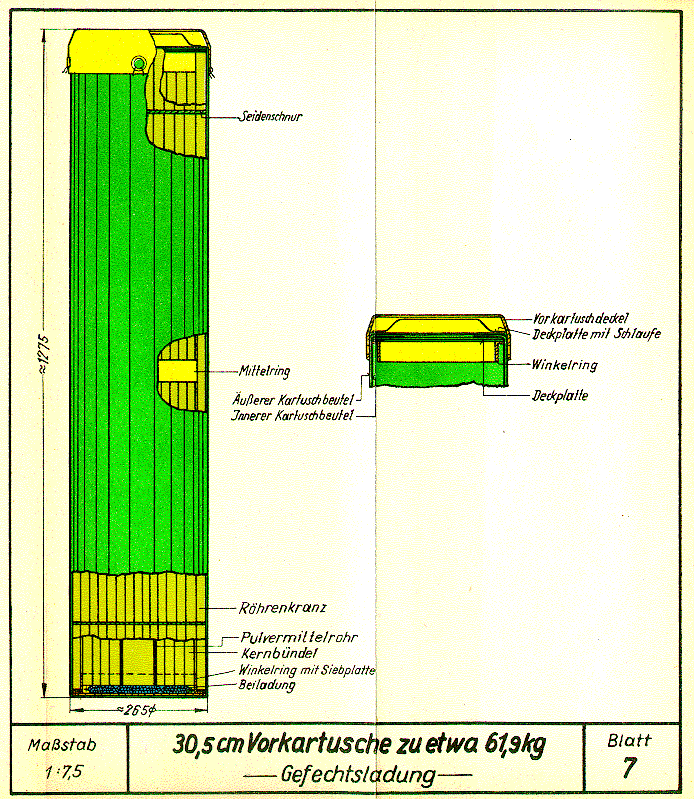 4. Abschnitt - II. Vorkartuschen; 6. a) Vorkartuschen - Gefechtsladung -, b) Vorkartuschen - Übungsladung -